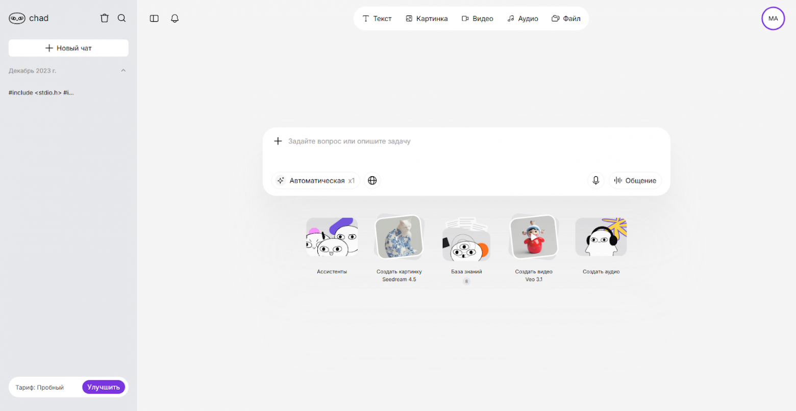 ChadAI – агрегатор, который содержит все модели для генерации аудио, видео, изображений и текста.