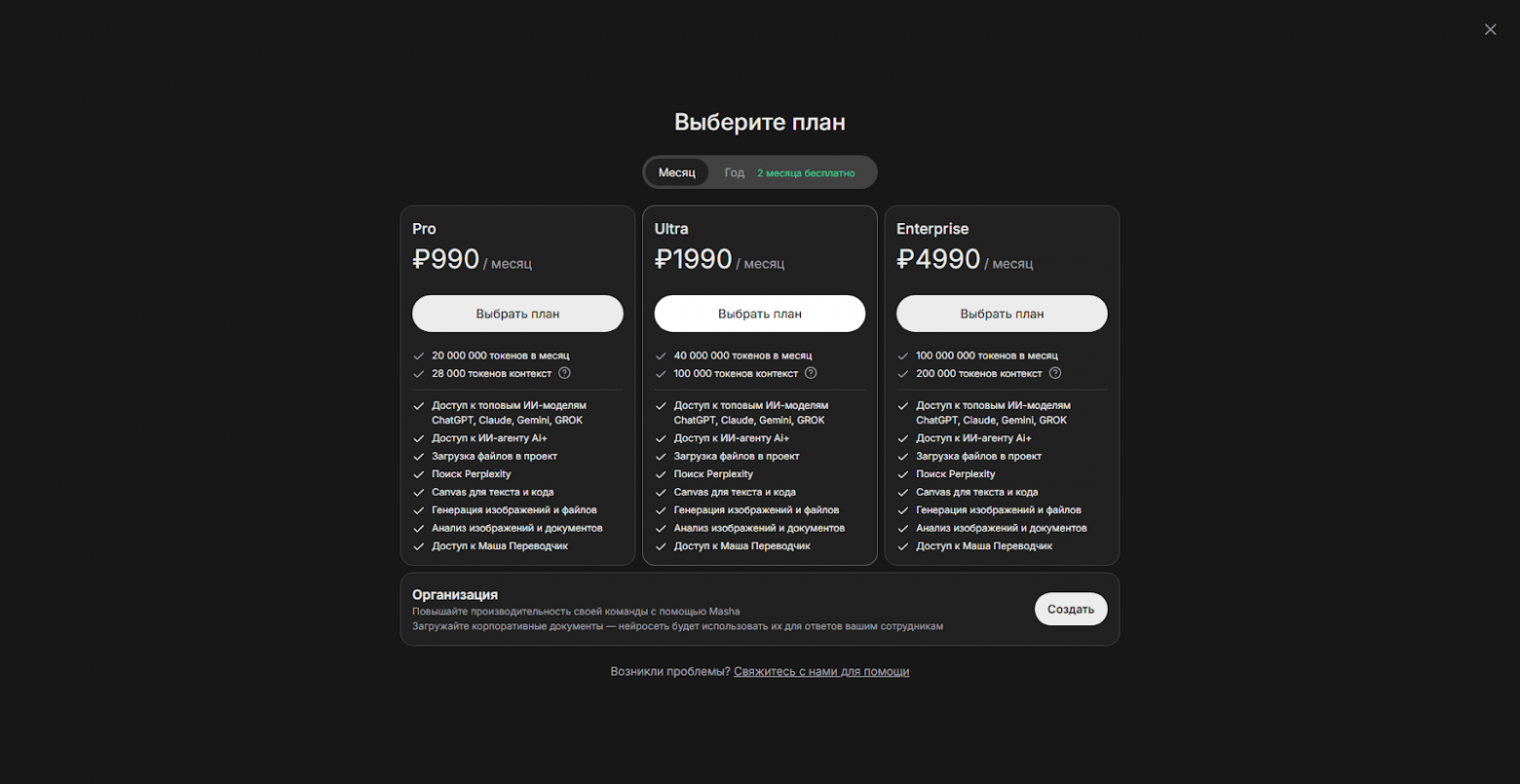 Впрочем, не только в доступности заключается проблема. Вы попробовали модель в бесплатном варианте, вам все понравилось, следом может появиться желание подключить уже платную подписку, а тут уже столкнуться с ситуацией, когда попросту нет возможности оплаты через российские карты.