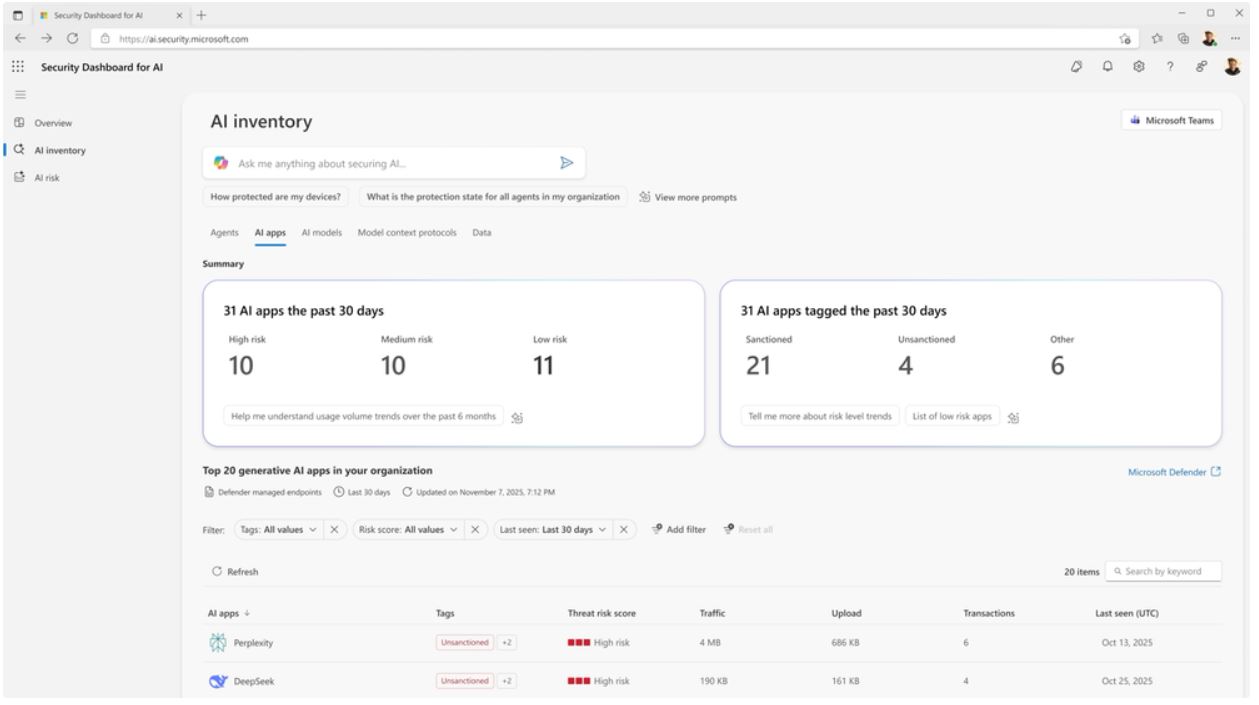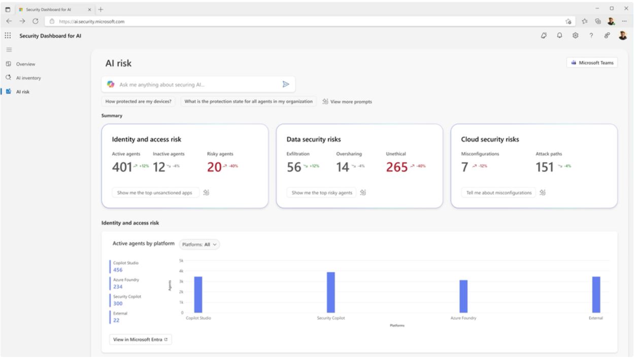 Предварительная версия панели мониторинга безопасности предлагает более эффективный способ управления агентами, приложениями и платформами в едином режиме. Она объединяет сигналы из Microsoft Defender, Entra и Purview в режиме реального времени.