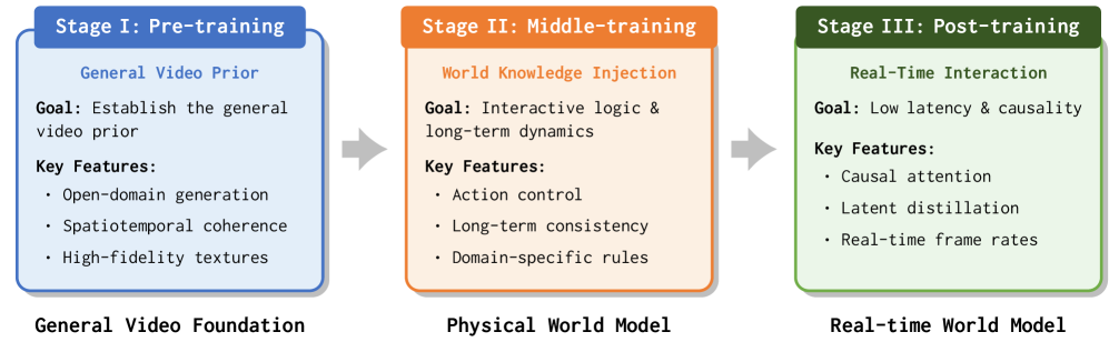 Новые open-source модели создают мир в реальном времени. Можно двигаться, крутить камеру, возвращаться к объектам — и сцена остаётся согласованной. Модель обучена на реальных видео, игровых записях и синтетических данных из Unreal Engine, где известны действия и параметры камеры.