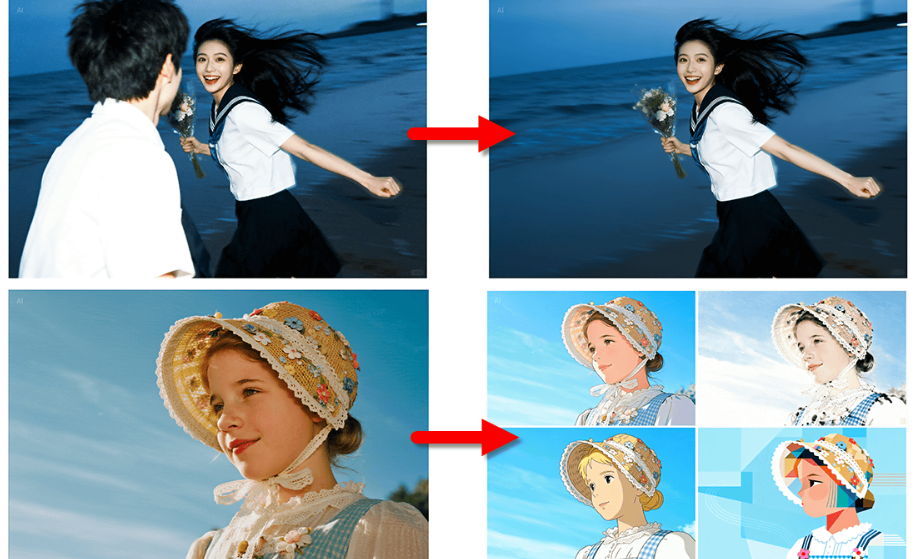 Пакет инструментов AI: ретушь лица, удаление объектов, смена фона.