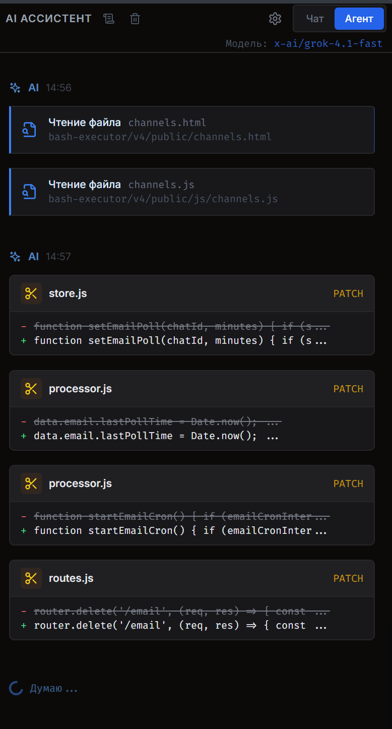 Но настоящий прорыв случился, когда появился агентный режим — способность ИИ самостоятельно выполнять цепочки действий: прочитать файл, понять структуру, составить план, изменить код, проверить результат.