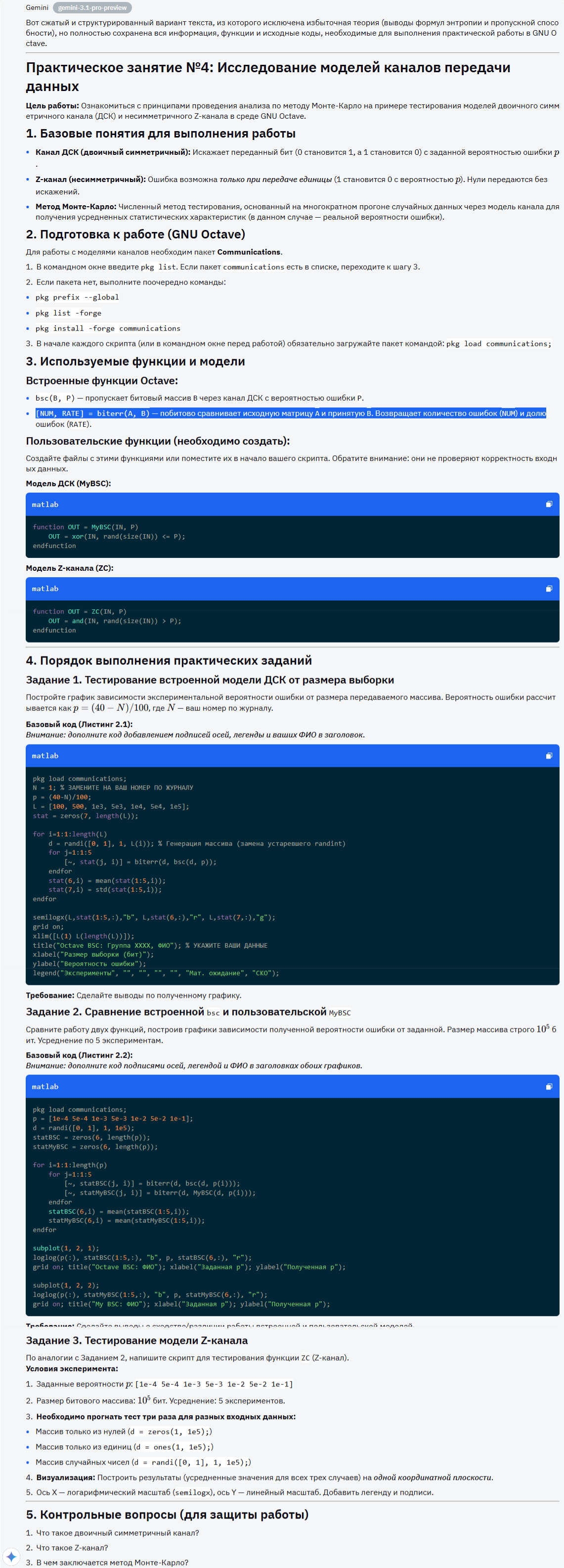 Ради интереса, я решил скормить моделям практическую работу по передачи информации в системах реального времени. Формат будет не просто текстом, а PDF-файлом. Цель – сжать и не потерять ключевую информацию. В идеале результат должен будет иметь все необходимые данные для выполнения самой практической работы.