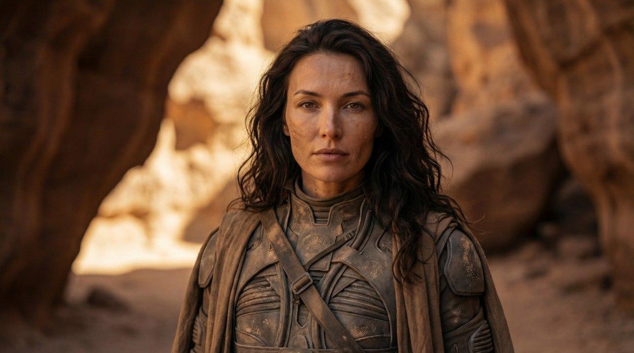Фотореалистичный портрет персонажа по референсному фото: полностью сохранены лицо, черты и возраст. Персонаж полностью интегрирован в визуальную эстетику и атмосферу сериала {название} — окружение, освещение, цветокоррекция, костюм и аксессуары стилизованы под этот мир с высокой точностью. Кадр выглядит как кинематографический стоп‑кадр: драматическое, реалистичное освещение, мягкие тени, отражения на коже и глазах, текстура кожи с порами и мелкими деталями, реалистичные волосы, глубина резкости, боке на фоне, материалы костюма с натуральной фактурой, разрешение 8K, с максимальным акцентом на фотореализм и атмосферу сцены.