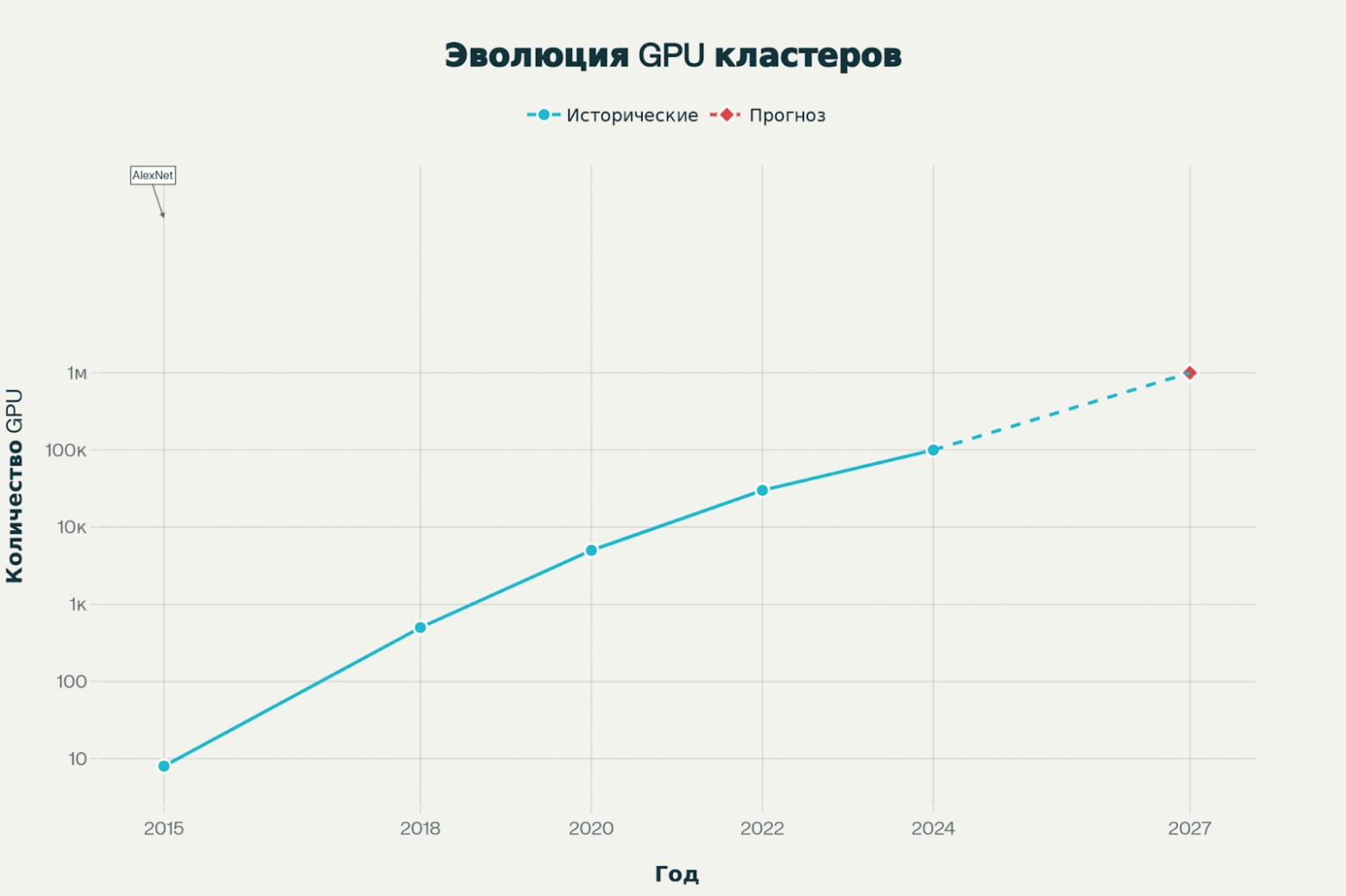 Развитие инфраструктуры для искусственного интеллекта демонстрирует беспрецедентную динамику роста вычислительных мощностей, когда требования к ресурсам увеличиваются экспоненциально с каждым поколением моделей. Эволюция от единичных графических процессоров к масштабным суперкомпьютерным кластерам отражает фундаментальные изменения в архитектурных подходах, методологиях распределенного обучения и инженерных решениях, необходимых для эффективной работы современных систем искусственного интеллекта. Данная статья представляет детальный анализ ключевых этапов этой трансформации, рассматривая технологические прорывы, архитектурные решения и практические вызовы, с которыми сталкиваются инфраструктурные архитекторы при проектировании систем следующего поколения.
