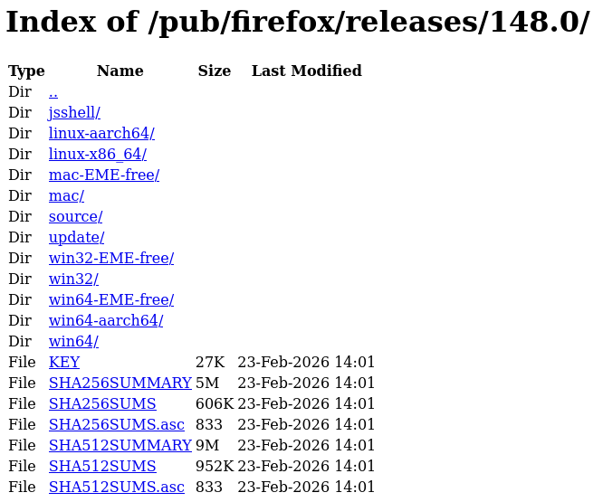 24 февраля 2026 года состоялся релиз стабильной версии Firefox 148.0 с улучшениями и обновлениями, а также с исправлениями ошибок и багов, обнаруженных в прошлой стабильной версии и новым общим разделом «Управление ИИ», который объединяет все связанные функции в одном меню и позволяет отключать ИИ-опции в браузере. Выпуск проекта состоялся по плану релизов от разработчиков.