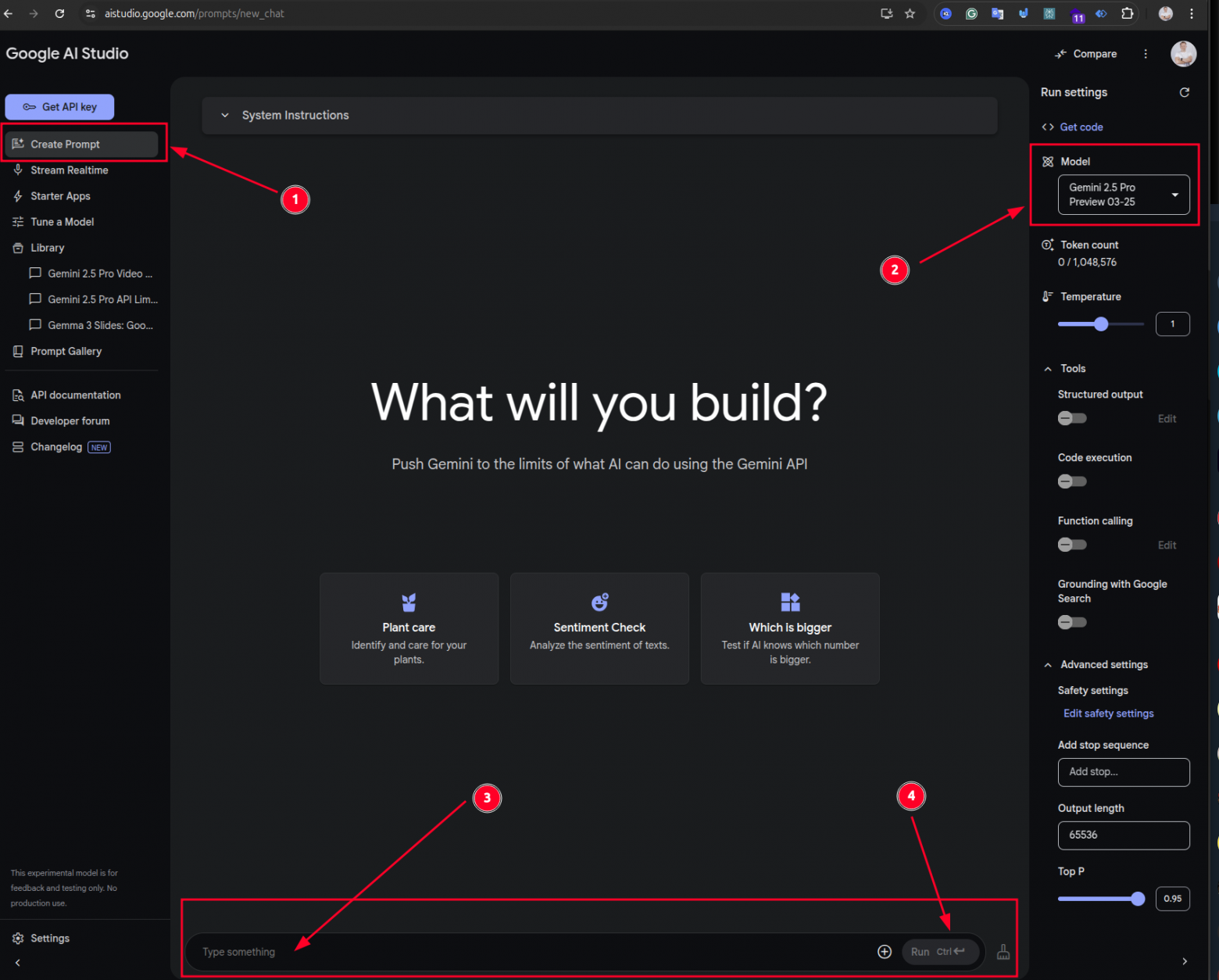 Google AI Studio: Часто это первое место, где можно попробовать новые модели. Обычно предлагается щедрый бесплатный тариф (с учётом ограничений по количеству пользователей) для экспериментов. Отлично подходит для тестирования подсказок и возможностей. (Внешняя ссылка: Google AI Studio)