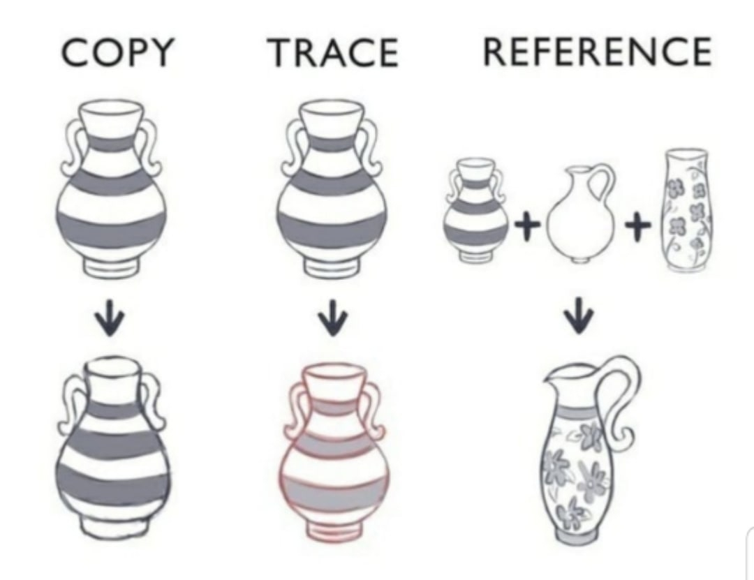 Вообще, каждый раз, когда я слышу фразу «человек создает новое, а нейросеть просто комбинирует то, что ей скормили» я вспоминаю вот эту шпаргалку для художников о том, как пользоваться референсами ?