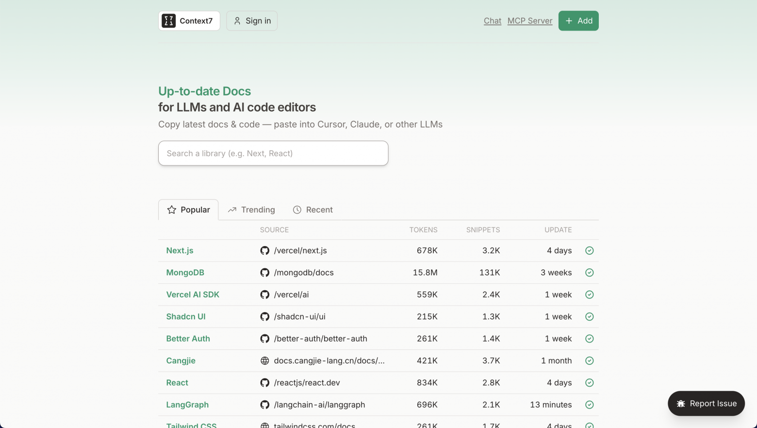 Также есть возможность подключать внешние источники данных через MCP (Model Context Protocol). Самый главный из них для меня — это Context7, библиотека самой актуальной документации по десяткам тысяч фреймворков и библиотек, адаптированной для использования LLM.