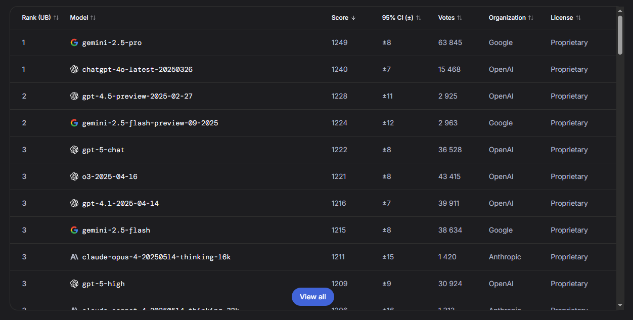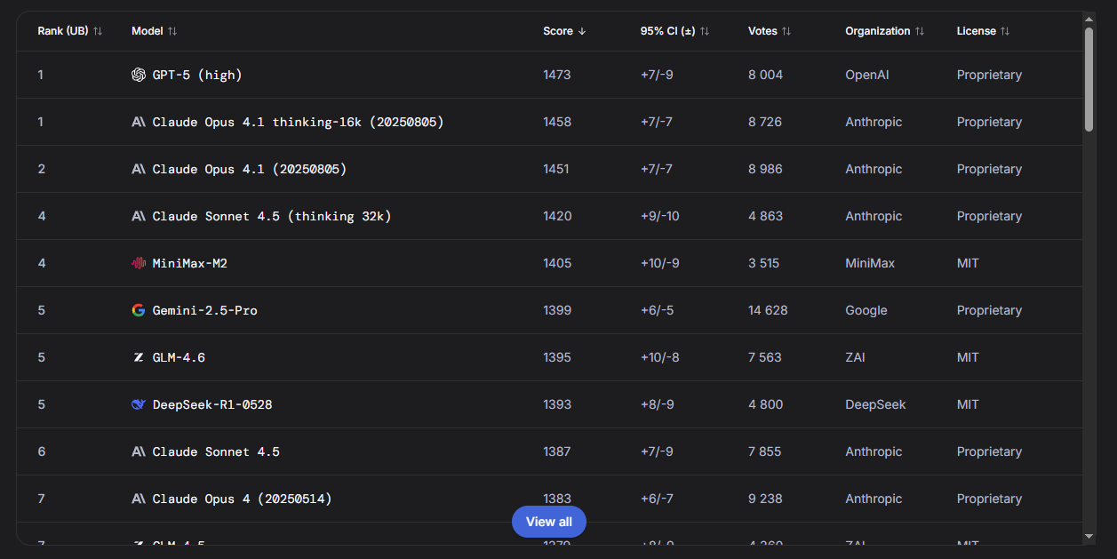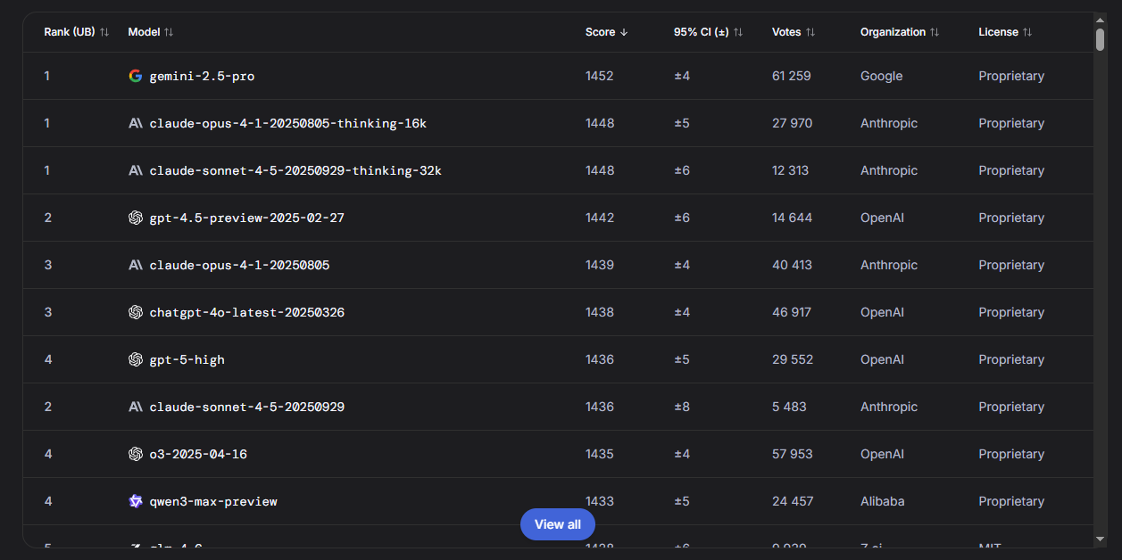 На основе тестов Chatbot Arena, вот мои рекомендации по выбору модели под разные задачи: