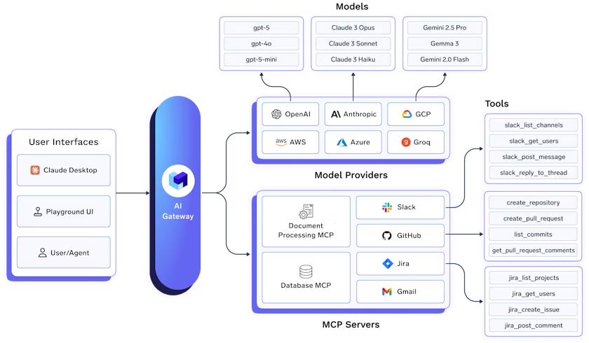 Она упрощает инфраструктуру генеративного ИИ (GenAI), интегрируя более 250 моделей - OpenAI, Anthropic Claude, Gemini, Groq, Mistral и open-source-фреймворки - без необходимости менять код. Команды используют единый API для чата, генерации текста, эмбеддингов и реранжирования, при этом аутентификация и управление API-ключами централизованы.