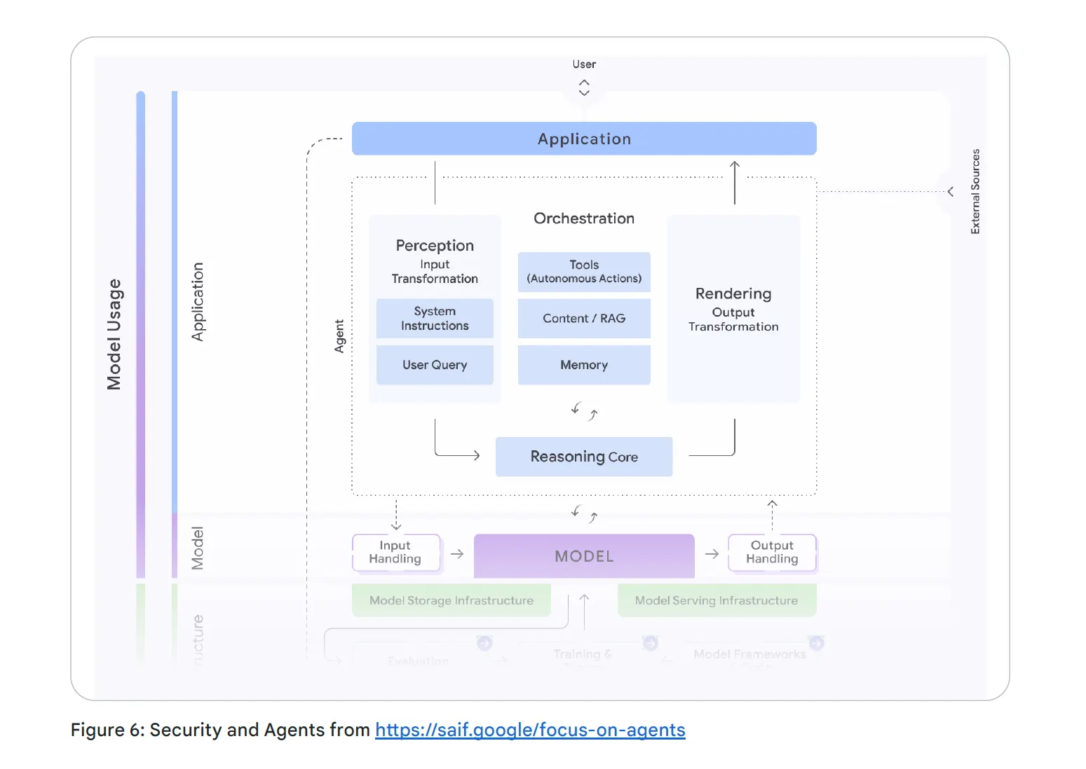Для управления этим риском нельзя полагаться только на суждения AI-модели, так как ею можно манипулировать (например, через prompt injection³³). Лучшая практика — это эшелонированная защита (defense-in-depth)³⁴.