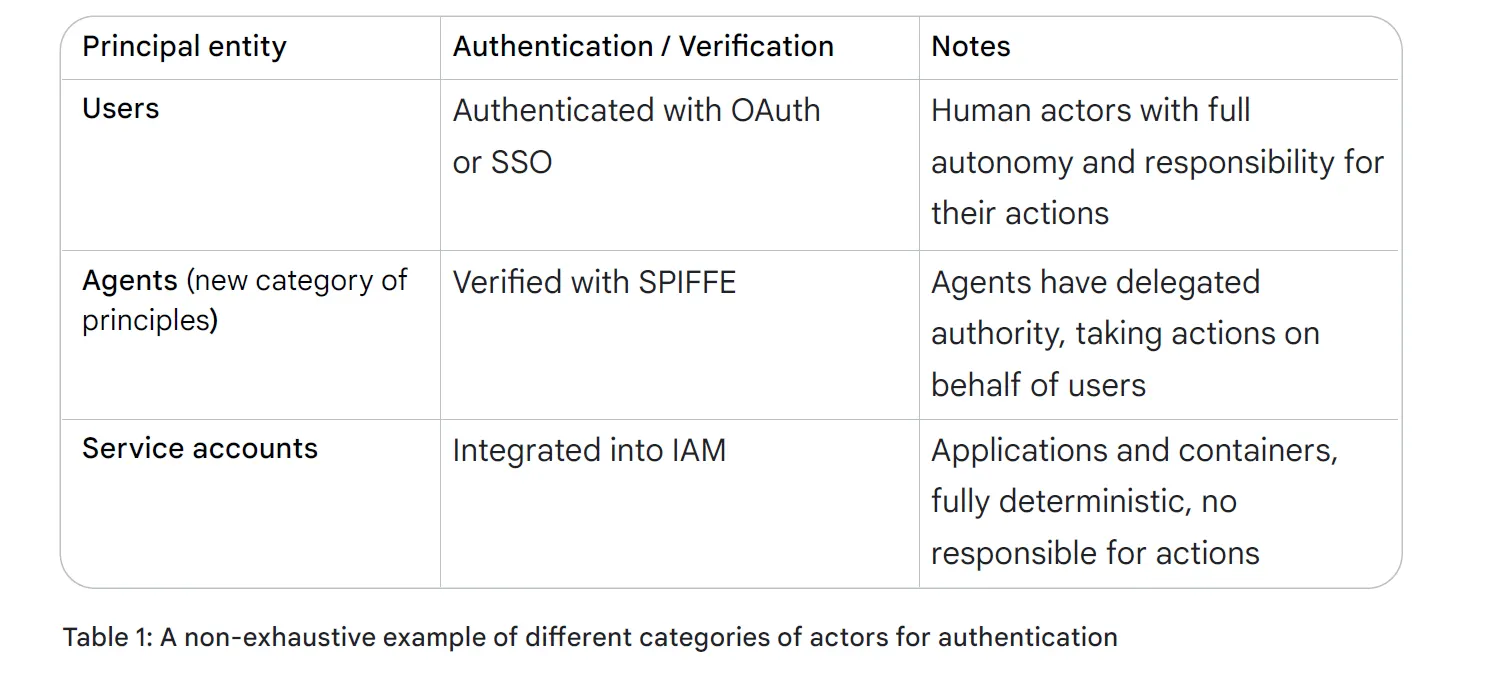 В традиционной модели безопасности есть пользователи-люди (OAuth, SSO) и сервисы (IAM, сервисные аккаунты). Агенты — это третья категория. Агент — не просто код, а автономный актор, новый тип субъекта доступа (principal), которому нужна собственная проверяемая идентичность, своего рода «цифровой паспорт».