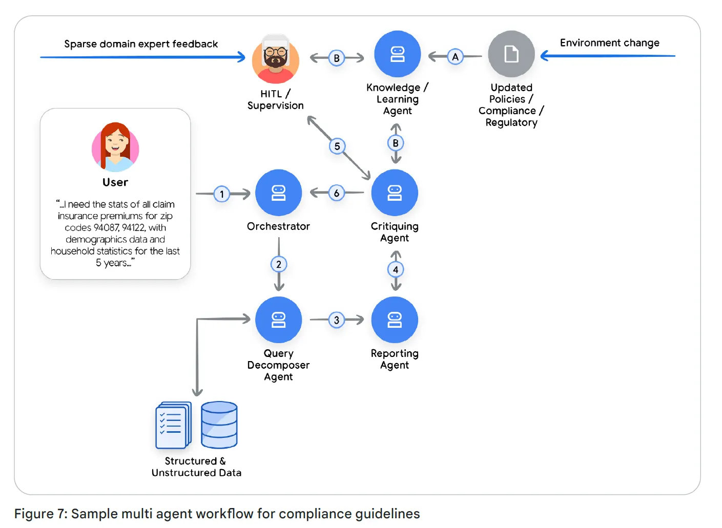 Рассмотрим агента, работающего в строго регулируемой отрасли, например, в финансах. Его задача — генерировать отчёты, соответствующие нормативным требованиям (например, GDPR).