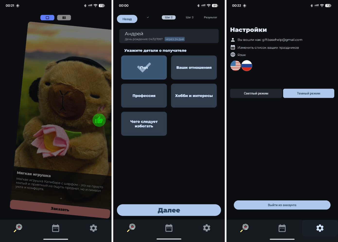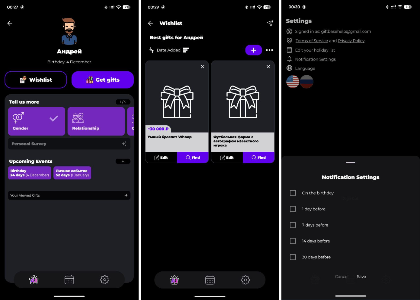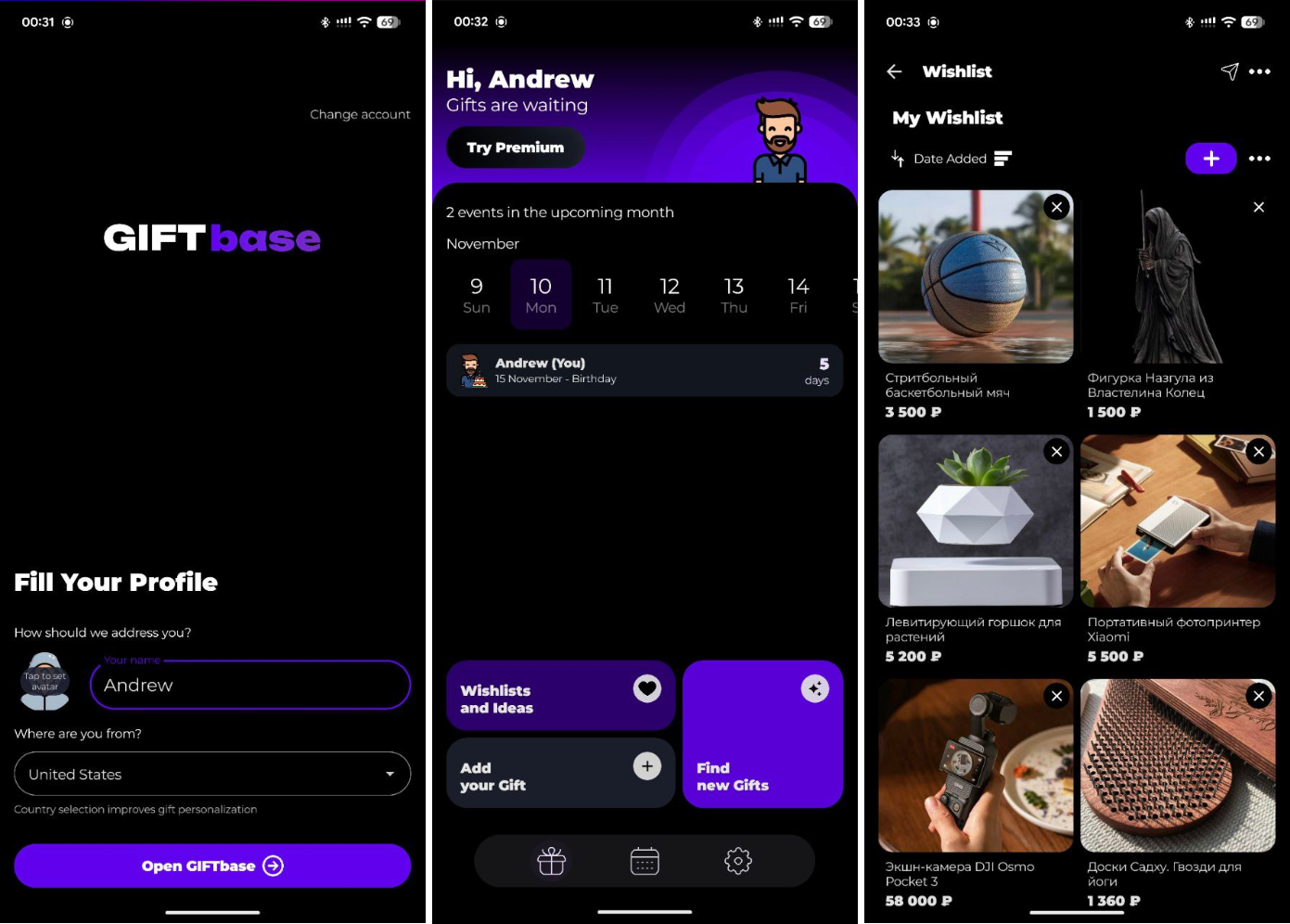 Следующий месяц я сфокусировался на двух важных вещах — Реализации экранов выбора подарка и создания профилей получателей.