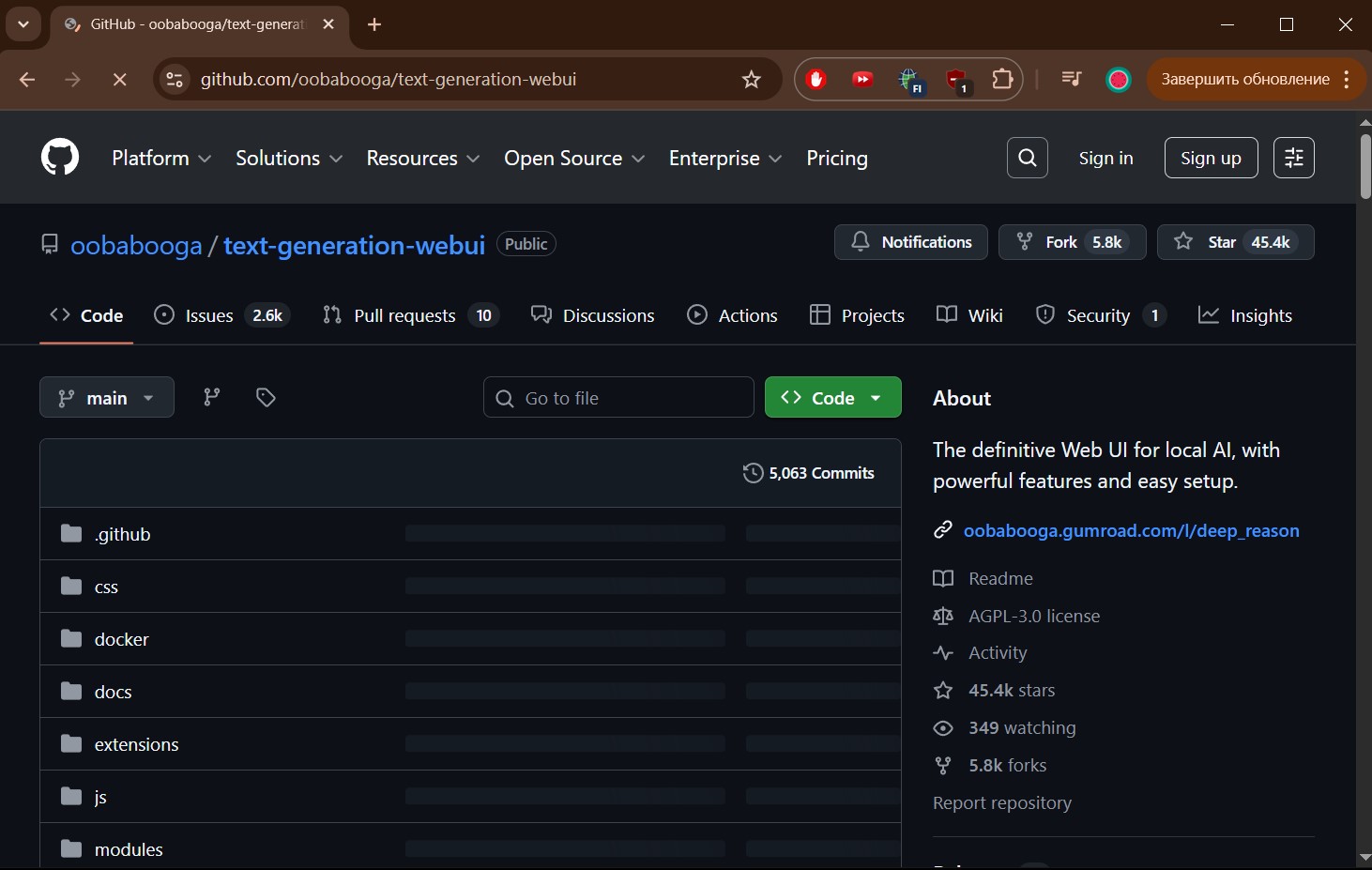 Официальная ссылка: https://github.com/oobabooga/text-generation-webui