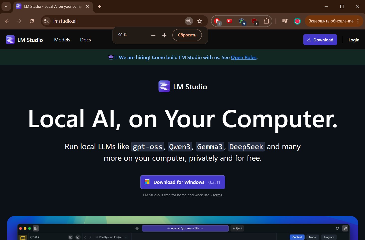 Десктопное приложение для запуска локальных ИИ-моделей вроде Llama или Mistral на ПК. Оно позволяет скачивать модели, настраивать промпты и генерировать текст оффлайн с чат-интерфейсом. Это простая среда для экспериментов с моделями.