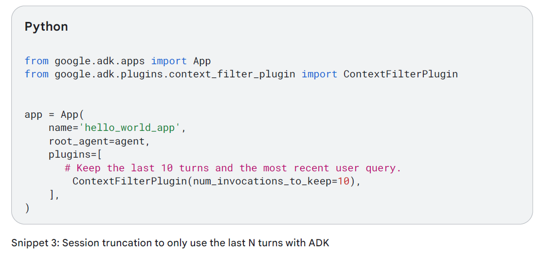 В упрощённой архитектуре сессия представляет собой неизменяемый (immutable) лог диалога между пользователем и агентом. Однако по мере его роста увеличивается и количество используемых токенов. Современные LLM могут обрабатывать длинные контексты, но существуют ограничения, особенно для приложений, чувствительных к задержкам (latency)¹⁰: