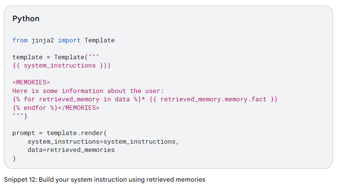 Например, вы можете использовать Jinja для динамического добавления данных из памяти в ваши системные инструкции: