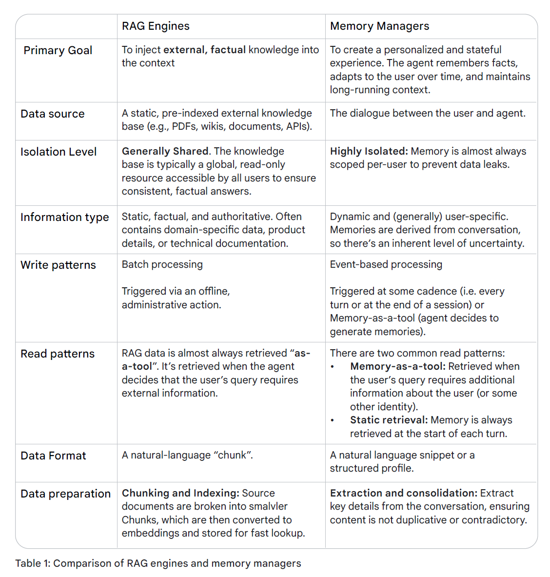 Управляемые системы памяти, такие как Agent Engine Memory Bank, должны помочь вам решить эти задачи, чтобы вы могли сосредоточиться на основной логике агента.
