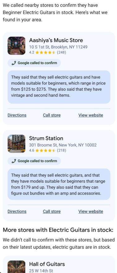 Google также добавляет функции покупок в приложение Gemini для пользователей из США. Так, функция агентского ИИ под названием «Пусть Google звонит» (Let Google Call) позволит пользователям направлять звонки в местные магазины, чтобы узнать о товарах, наличии их на складе или о распродажах и акциях. Когда звонит агент ИИ, он сообщает магазину, что это автоматизированный звонок; продавцы смогут отказаться от такой беседы. После звонка пользователь получит текстовое сообщение или электронное письмо с собранной информацией. Функция агентского звонка будет запущена в определённых категориях, начиная с игрушек, товаров для здоровья и красоты, а также электроники.