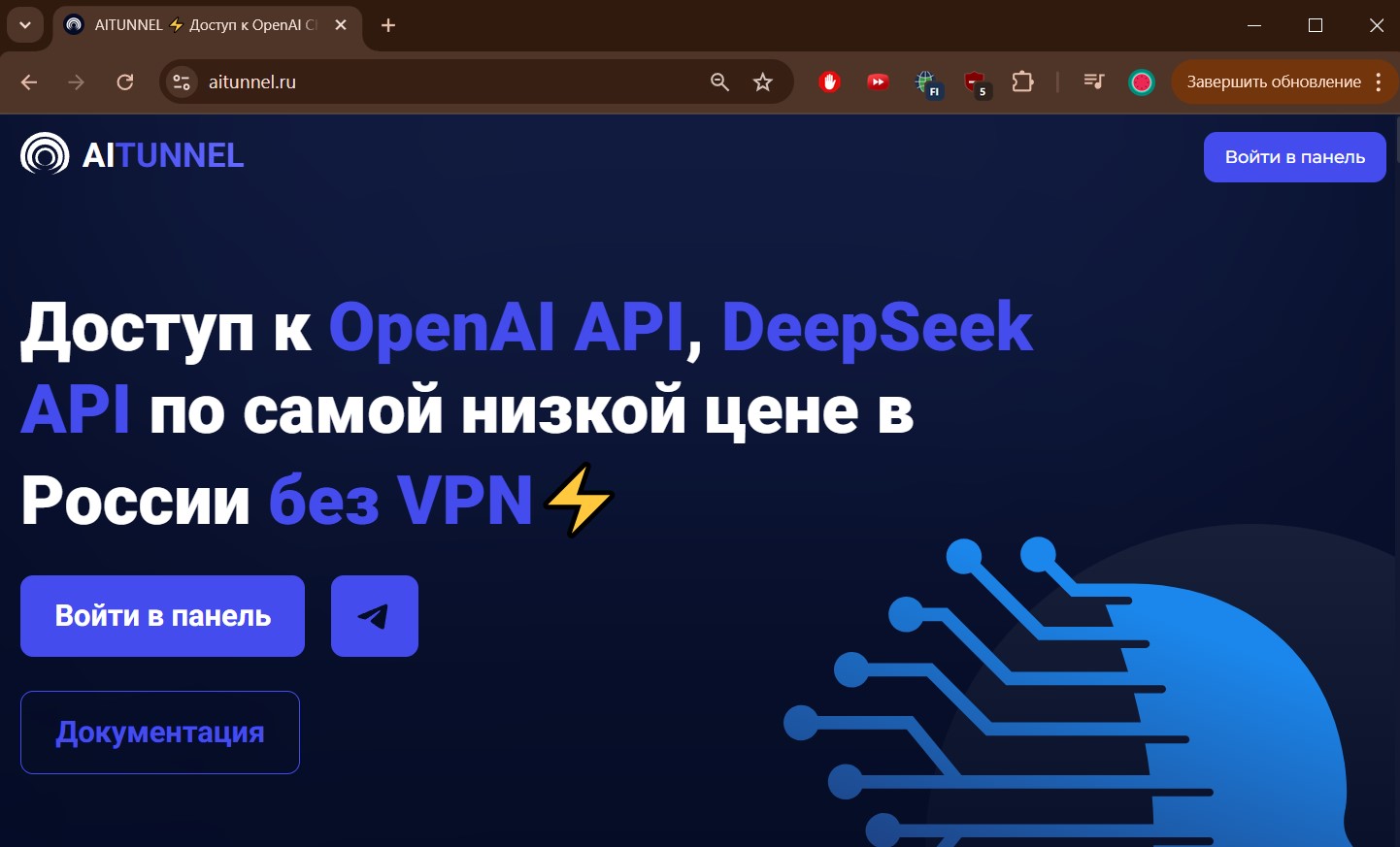 API для разработчиков: AI Tunnel (от 250 ₽) - простая интеграция без лишних хлопот.