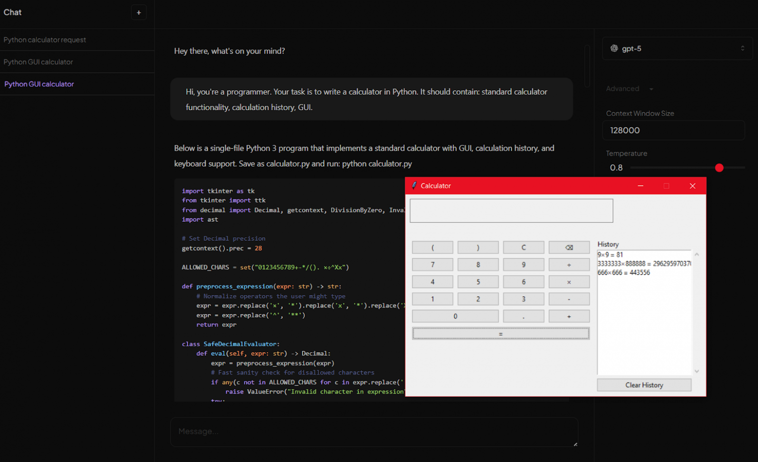 Первая проблема, с которой я столкнулся, - настраиваемый контекст. По умолчанию он установлен на 4096 токенов, чего недостаточно. Первая попытка сразу провалилась именно по этой причине. Модель GPT-5 не выдала нужного результата в таких ограничениях.