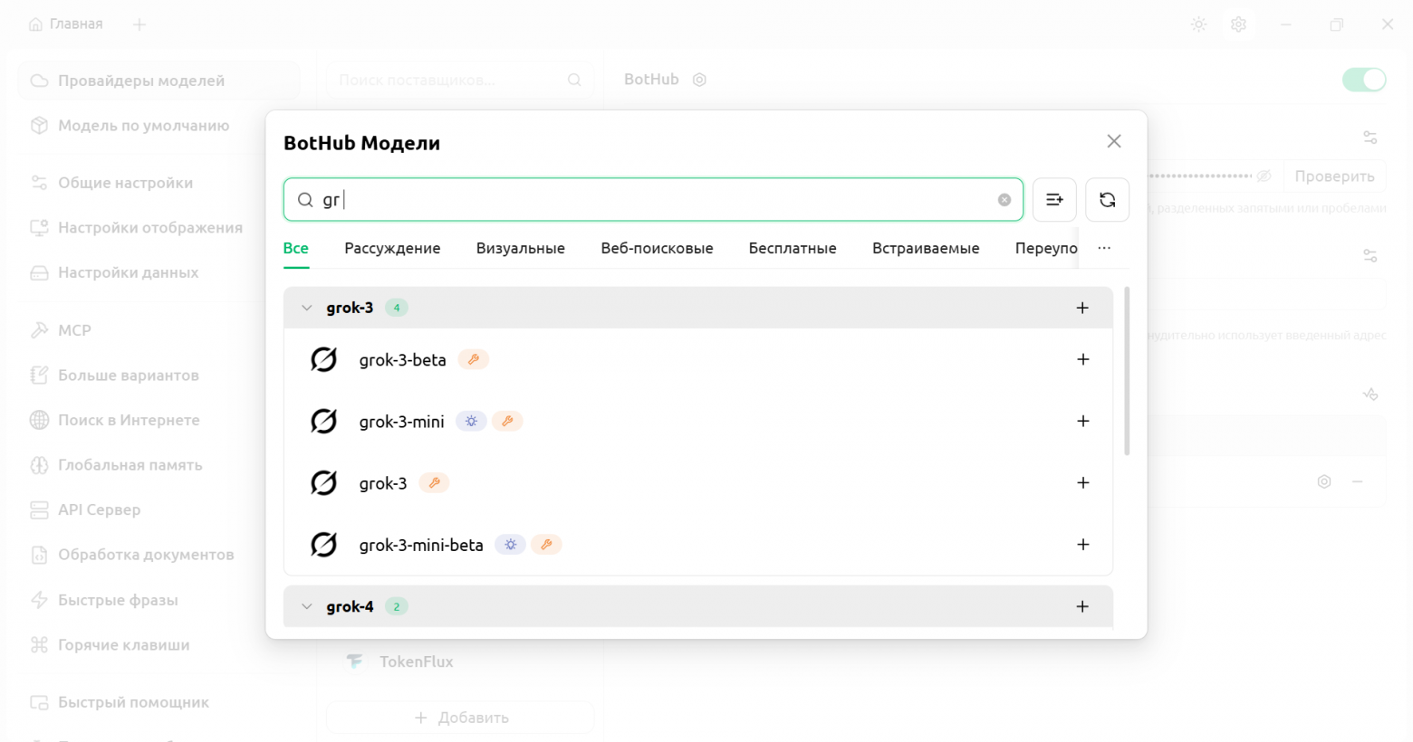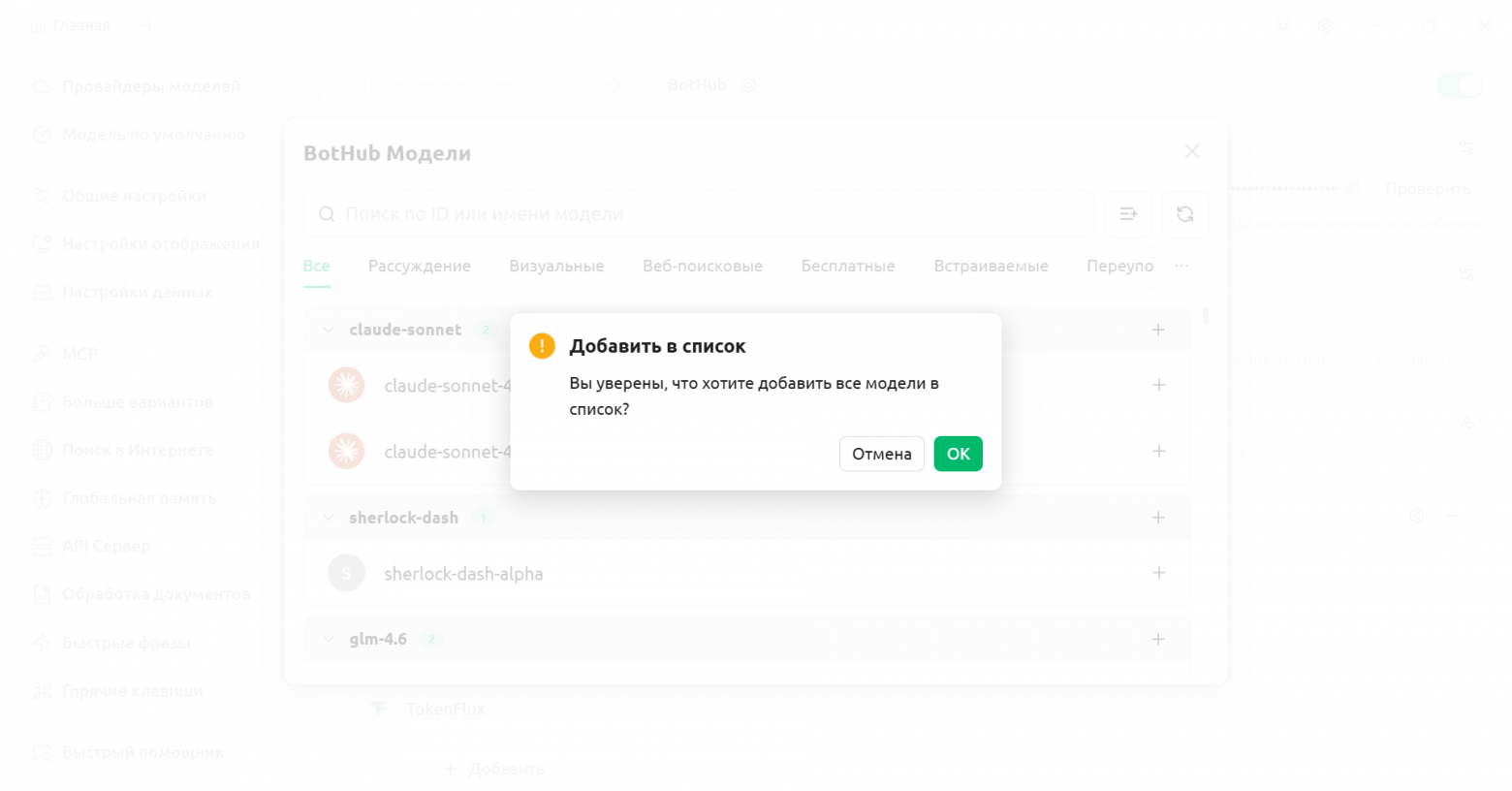 1. Перейдите в Провайдеры моделей (в той же шестеренке) и нажмите Добавить.