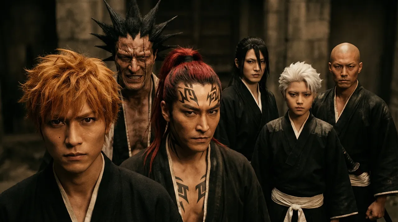 Гиперреалистичный групповой портрет актёров сериала «Блич» в суровой экранизации. Снято на IMAX 70 мм, кинематографическое освещение. Персонажи трансформировались в настоящих азиатских актёров с детально проработанной текстурой кожи, порами и небольшими несовершенствами. В центре внимания: