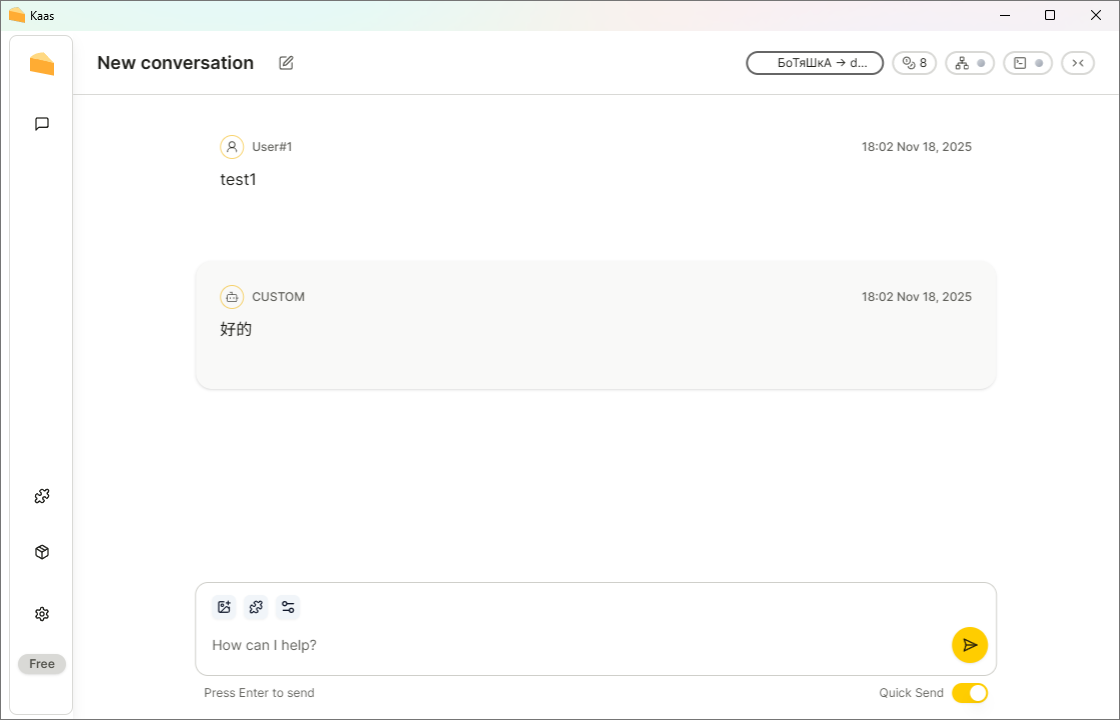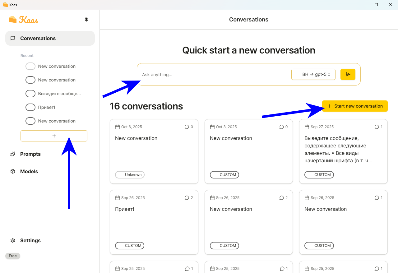 В любом случае итог один: ваш промпт улетает в модель, и Kaas заводит свежий диалог.