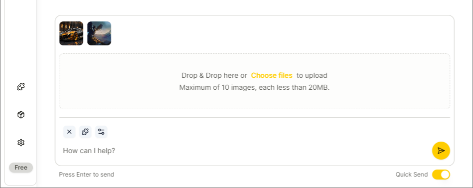 Но стоит попытаться отправить картинку без промпта — и Kaas встаёт насмерть. Такой запрос он упрямо игнорирует, будто делает вид, что ничего не видел: