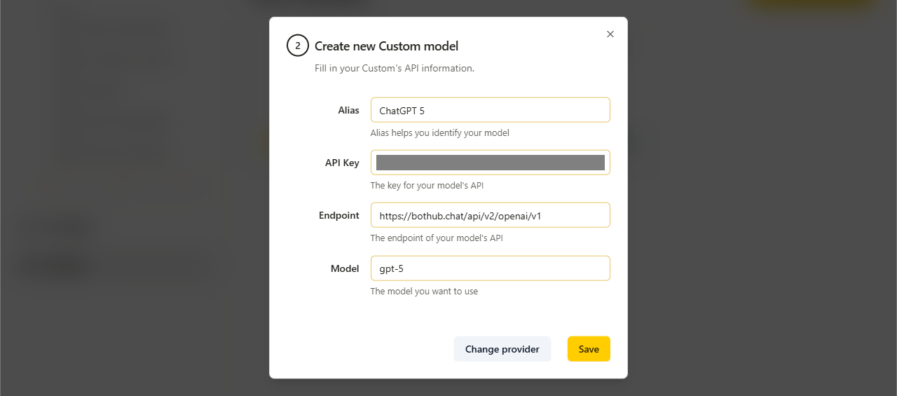 Alias: то имя, которое будет видно в списке, вроде «gpt-5», «ChatGPT 5» (по сути, тут можно написать что угодно).