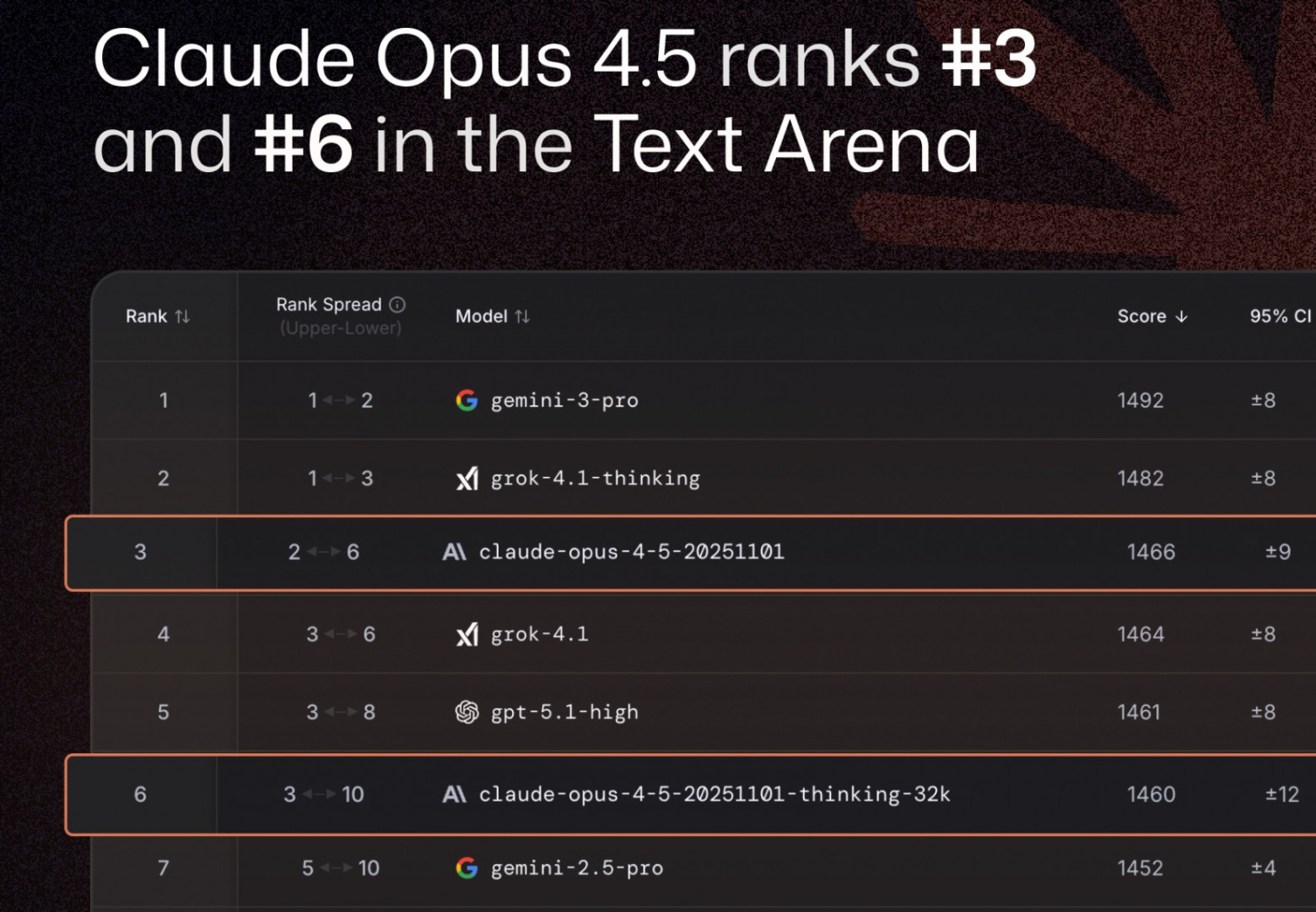 На Text Arena, где оценивается ответы моделей в повседневных ситуациях (ответы на вопросы, перевод, следование инструкциям), Claude Opus 4.5 пропустил вперед Gemini 3 Pro и Grok 4.1 Thinking. При этом важно отметить, что рассуждающая версия пришла лишь шестой - это показывает особенность архитектуры Claude Opus 4.5, где режим рассуждений может ухудшать работу в простых ситуациях. При этом быстрая модель пришла первой в таких подкатегориях, как математика, программирование, следование инструкциям и работа с длинными промптами.