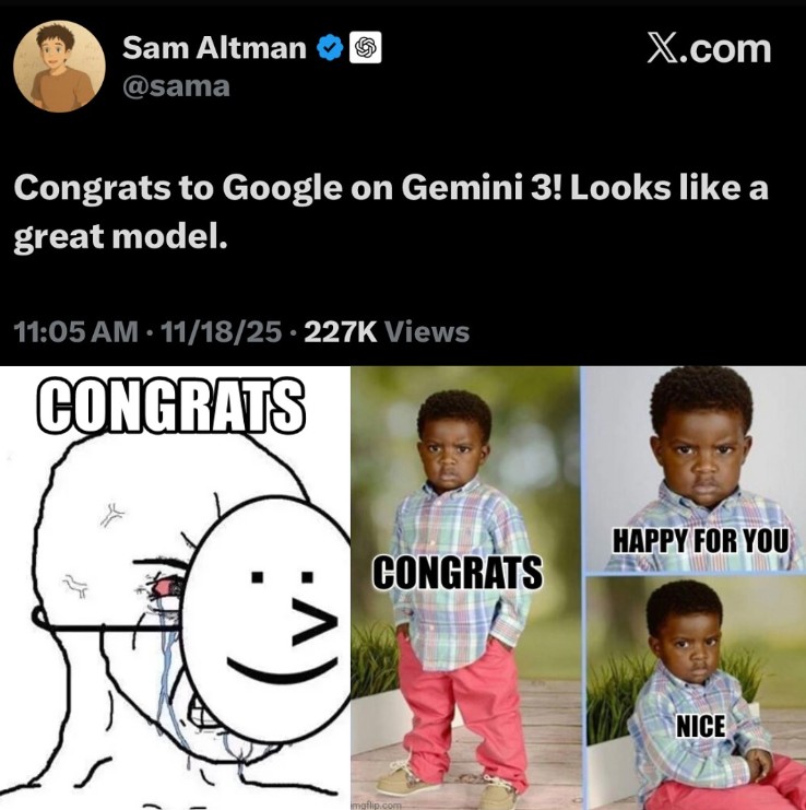? Капитализация Alphabet (материнской компании Google) догоняет рыночную оценку NVIDIA – сейчас разрыв составляет всего $300 млрд. Сыграло два фактора – компания успешно выпустила свою AI-модель Gemini 3, а также все внезапно вспомнили, что Гугл тоже делает ИИ-чипы («тензорные процессоры» – на слух звучит примерно как «торсионные поля», если честно). Вместе с этим выросли состояния сооснователей Google Сергея Брина и Ларри Пейджа – они залетели в топ-3 самых богатых людей мира. А обнявшись вдвоем, они еще и самого Маска обгоняют!!