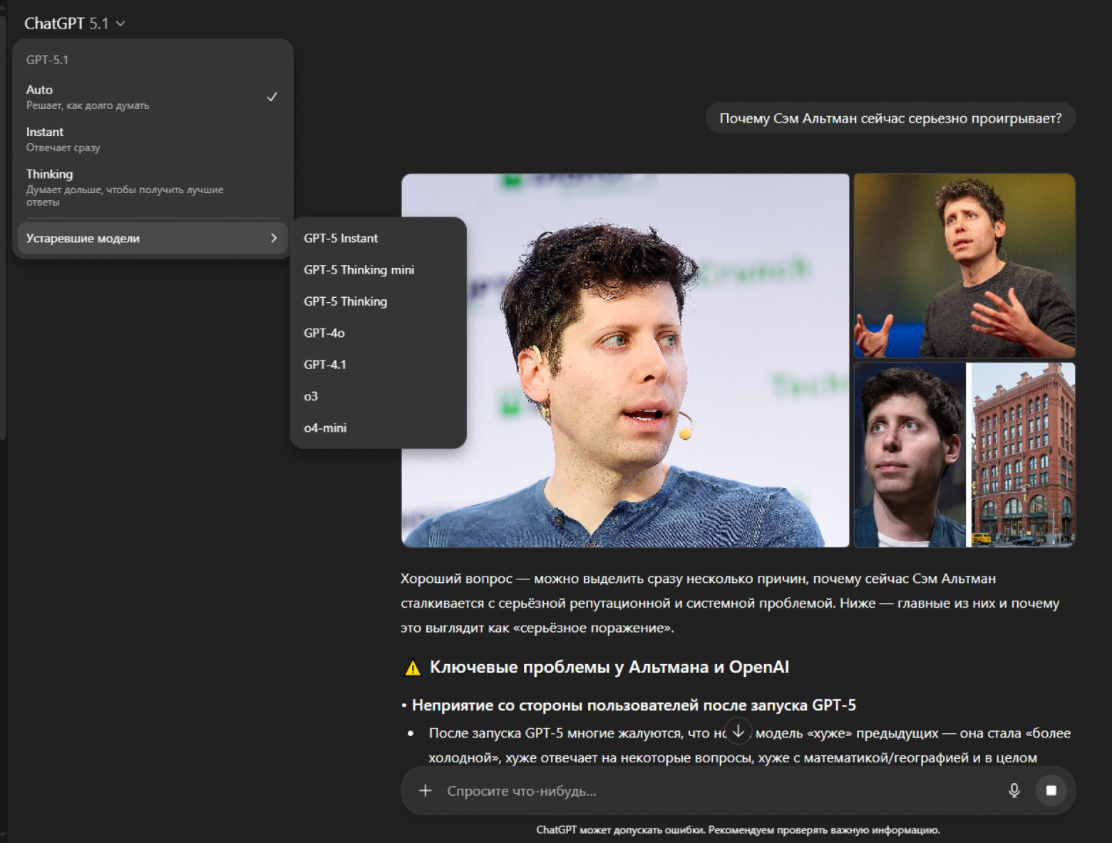 Стратегические просчеты OpenAI наиболее ярко проявились в продуктовой политике конца 2025 года. Релиз GPT-5.1, который должен был восстановить доминирование компании, обернулся волной разочарования.