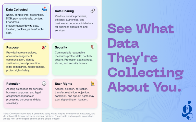 Из всех представленных расширений это мне понравилось больше всего но все равно не то. Анализирует сайт в автоматическом режиме, само находит пользовательские соглашения и подсвечивает их уязвимые места.
