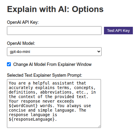 можно менять модель и задавать свой промпт