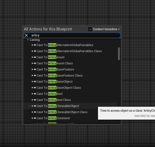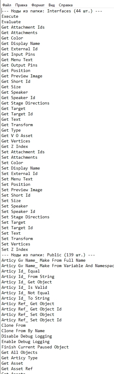 Теперь возникает следующая проблема: Мне нужно перенести всю мою архитектуру на новую почву - поменять Таблицы на поток ARTICY. Помогает мне со всем этим Gemini 2.5 (GPT от Гугла). Оказалось, что он не может работать с ARTICY - потому что инструмент видимо не настолько популярный и хуже того - у них нет документации (ЭТО КАК ВООБЩЕ? Я не шучу, у них есть документация для работы с самим редактором, но нет документации для работы внутри игровых движков. Если вы все таки найдете ее - кидайте в комменты). Короче. ЧАТ не может мне помочь - он все время путается, подсказывает не те ноды и я не могу перенести архитектуру на новый тип данных. Я мучаюсь, но ем кактус, как понимаю что нет, так дело не пойдет, нужно что-то придумать. В UE вам доступны все возможные ноды из общего поиска (СКРИН_5). Если они отображаются в редакторе, значит можно попробовать их оттуда вытащить. Я знаю что можно написать коротенькую программу чтобы она обходила файлы и собирала по ним всю информацию - имя им СКРИПТЫ, как и многим другим похожим программам.